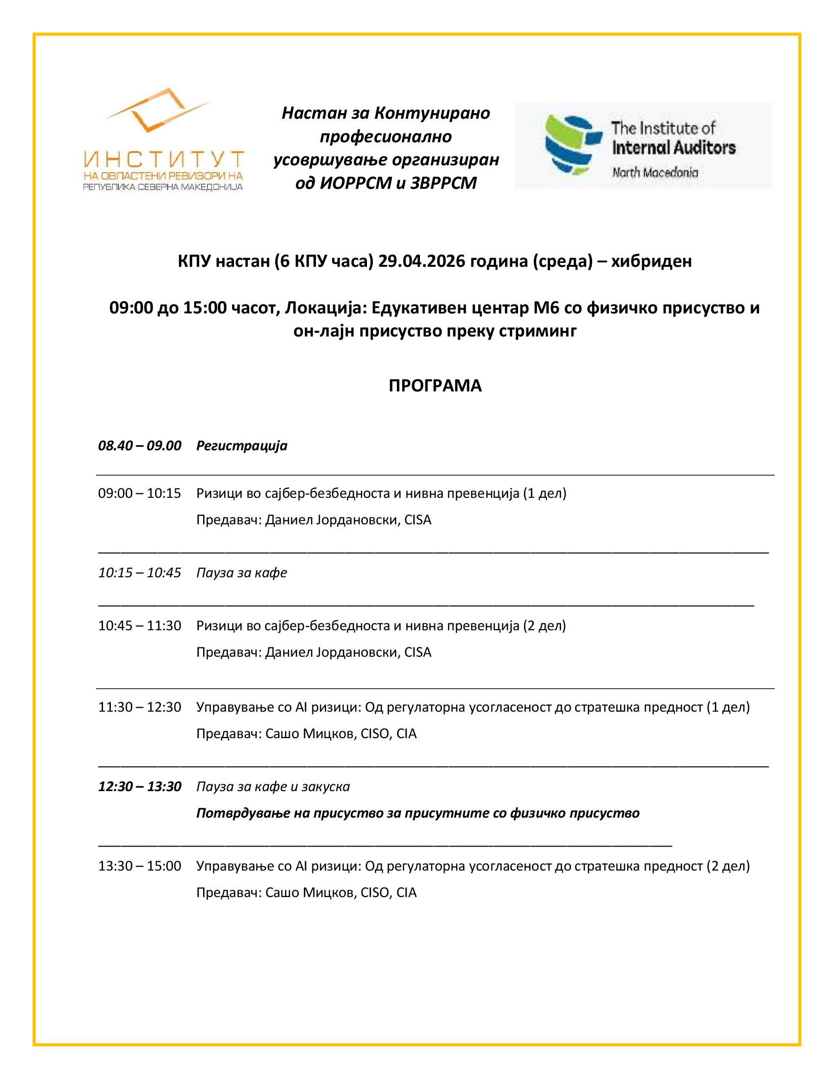 Настан за Контунирано професионално усовршување организиран од ИОРРСМ и ЗВРРСМ